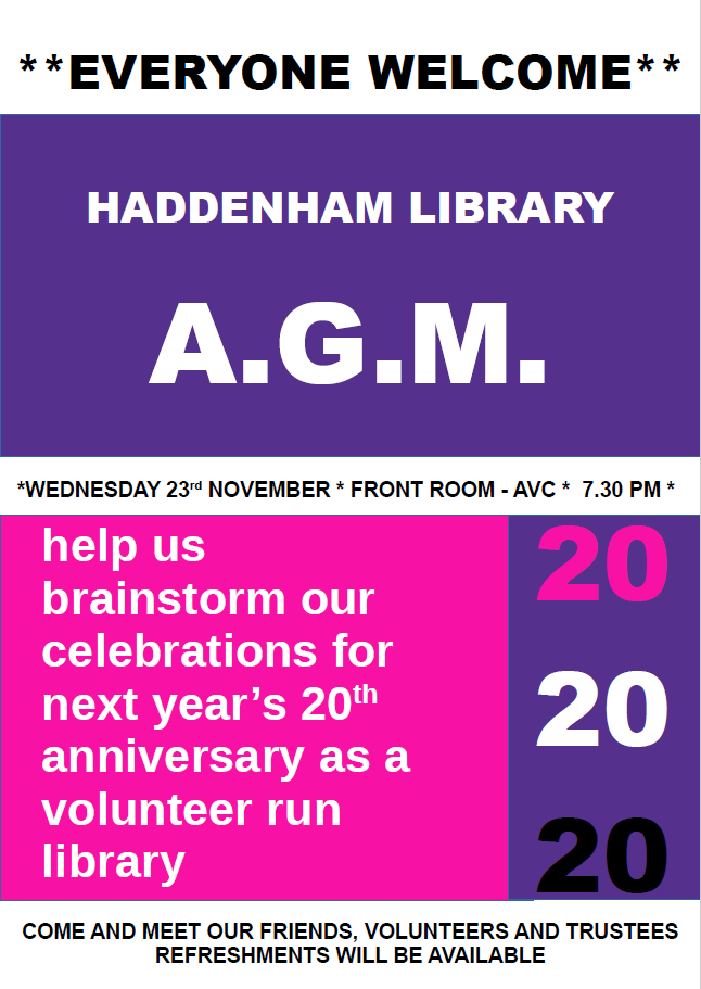 To join us, speak to a Library volunteer, or drop a line to info@haddenhamlibrarycambs.co.uk.