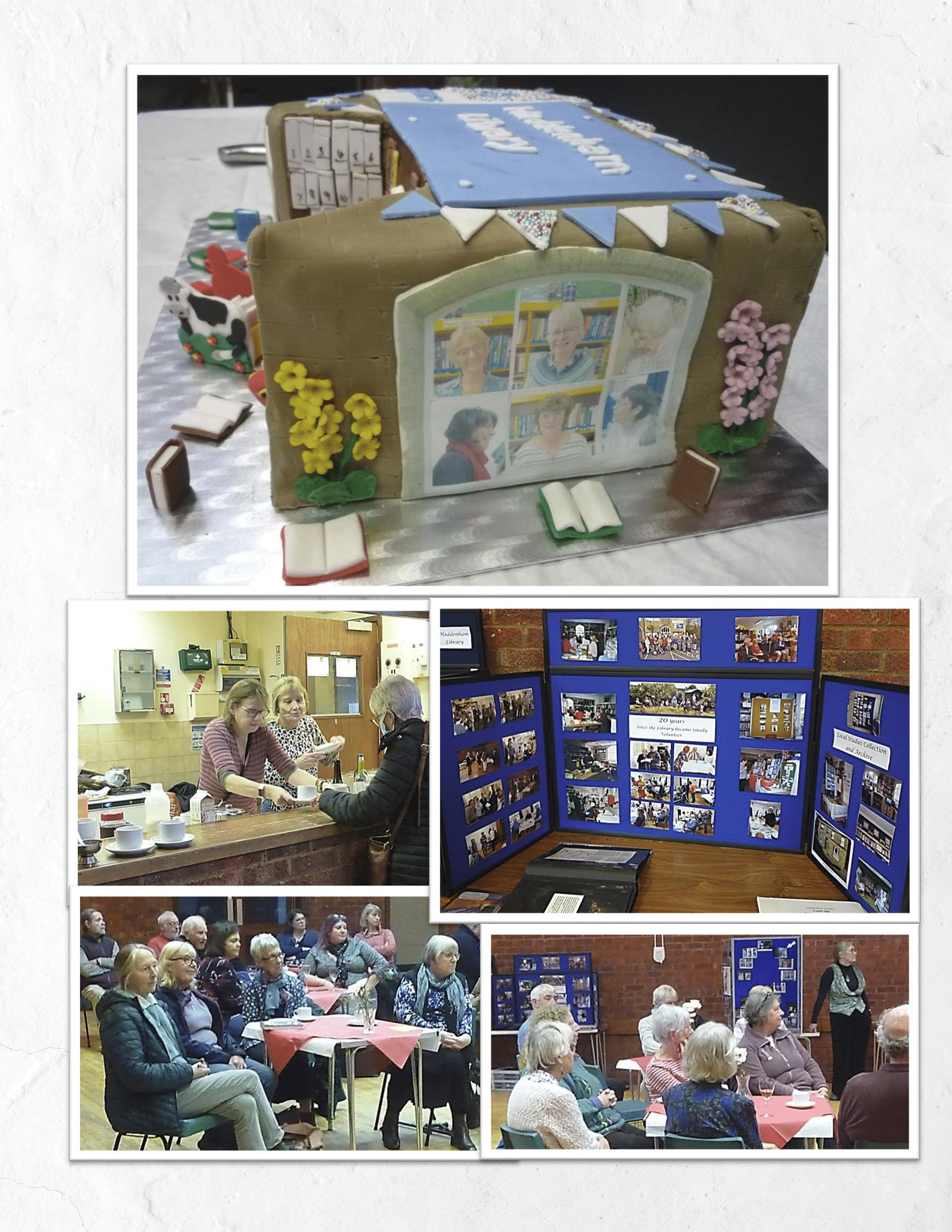 The Haddenham Warm Hub gratefully accepted what was left of Rosemary's work of art Library cake (a great pity to have to cut it, really). Some great memories here!