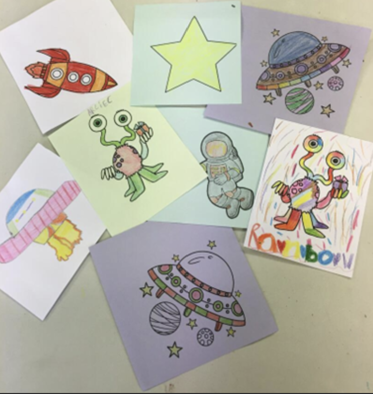 It was good to hear how knowledgeable many of the children were about the solar system, and their ideas about alien life, but more of a surprise was meeting a child who had actually met an alien. By the end of the story session we were all 99% convinced it was true!